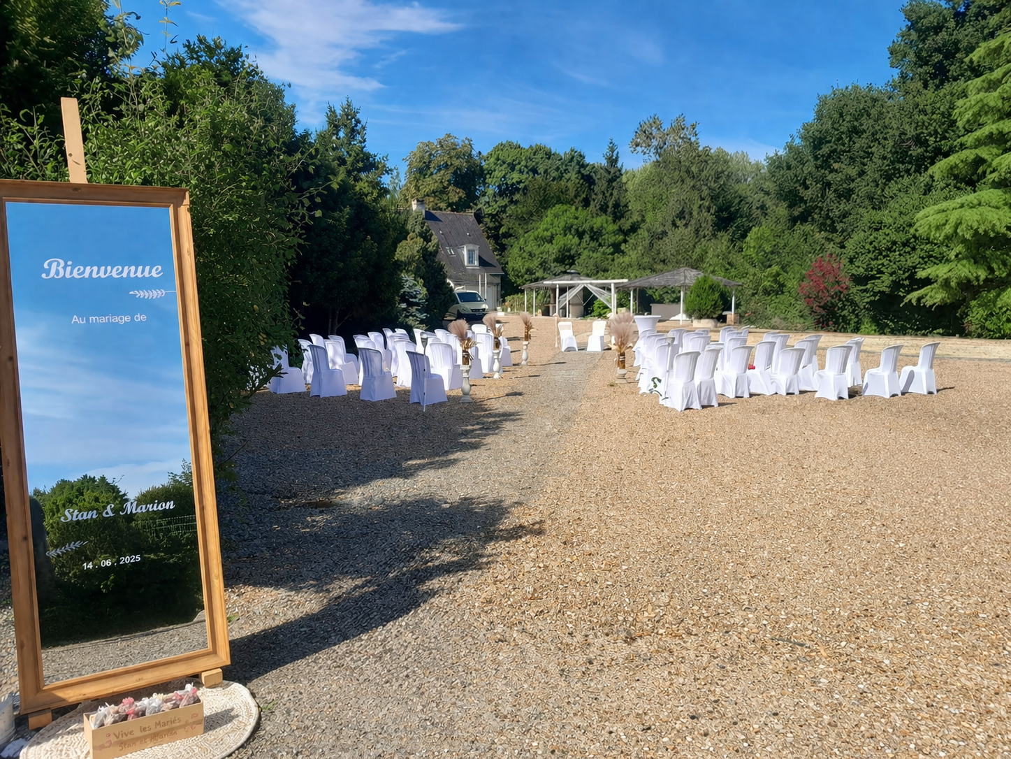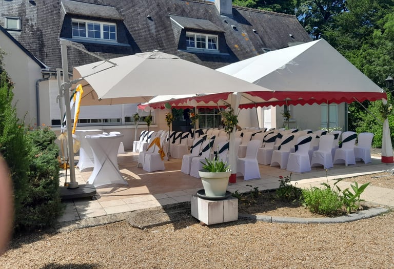 Avec sa pelouse de 1000 m² et sa terrasse, le domaine permet d’accueillir cérémonies laïques, cocktails ou moments conviviaux en plein air. Les extérieurs offrent un environnement agréable pour profiter pleinement de votre réception.