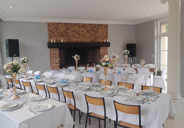 La seconde salle de réception de 140 m² permet d’accueillir vos invités dans une ambiance festive et conviviale. Spacieuse et lumineuse, elle est parfaite pour les grandes réceptions et les soirées dansantes.