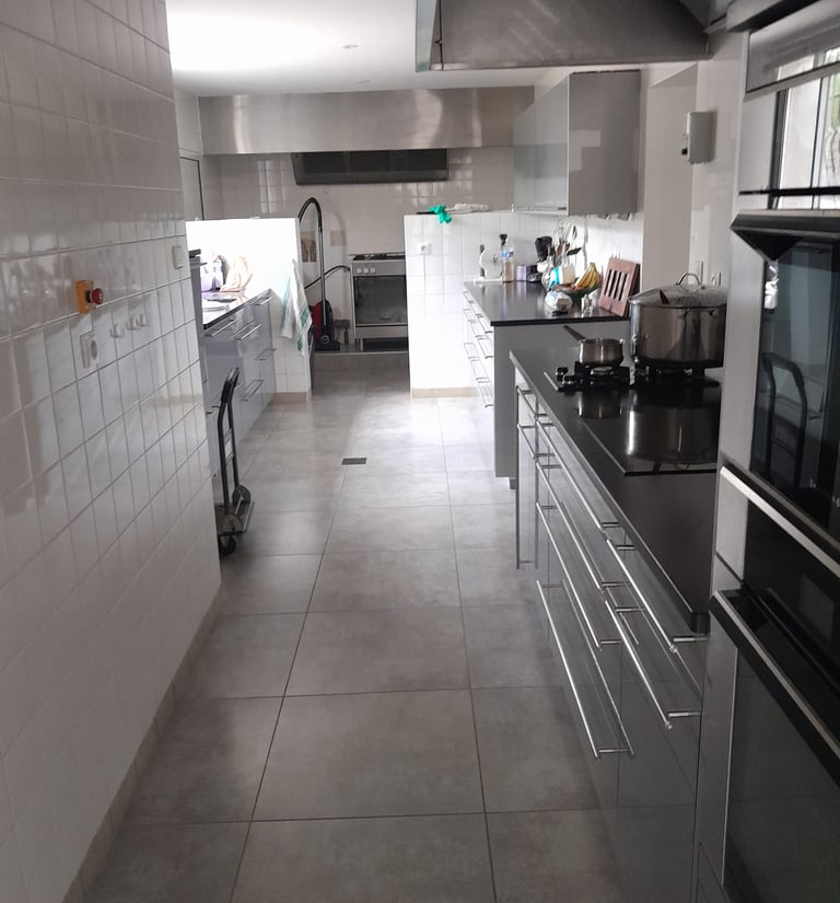 Vous y trouverez notamment un piano à gaz, un four, un micro-ondes, un lave-vaisselle, plusieurs réfrigérateurs ainsi qu’un congélateur. Une grande table de travail et une cave de 100 m² complètent cet espace fonctionnel.